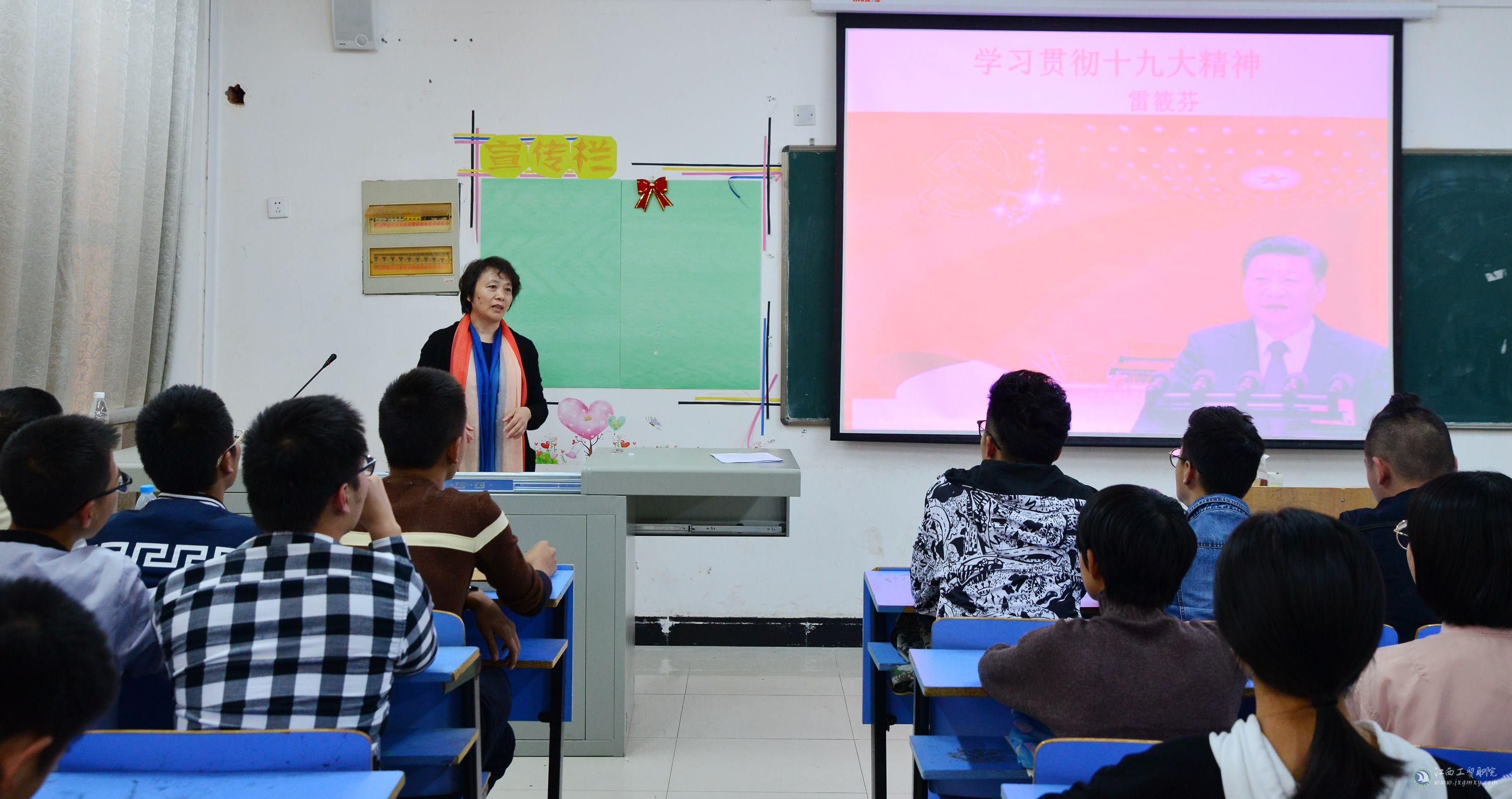 为进一步深入开展“思想政治工作体验日”活动,积极认真宣讲党的十九大精神,推动党的十九大精神进课堂、进教材、进头脑,11月8日下午,江西工业贸易职业技术学院党委书记万玉青,党委副书记、院长雷筱芬分别走进所联系的班级教室,为学生讲党课,宣讲党的十九大精神。