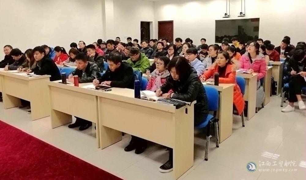 11月21日下午,江西工业贸易职业技术学院党委副书记、院长雷筱芬在二专录播室为机电工程系全体教师以及学生代表宣讲党的十九大精神。雷院长以《学习贯彻十九大精神》为题,从十九大的基本情况、十九大报告的主要精神、修改党章的情况、十九大的重要意义及全面贯彻落实十九大精神基本要求四个方面,全面、系统、深入地解读了党的十九大精神。