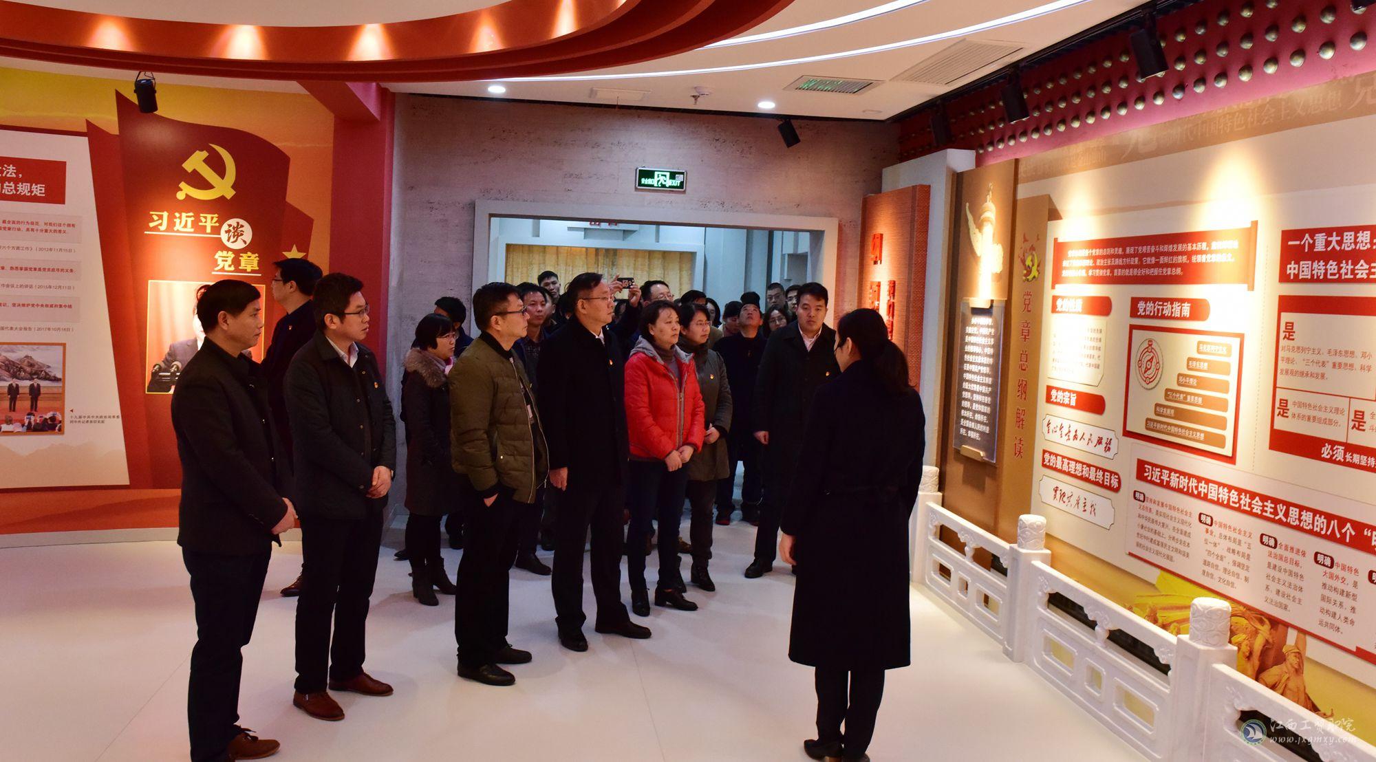 在解说员的引导下,全体党员干部参观了南昌市党章教育馆,党章教育馆中内容丰富的实物、图片、文字、影音等反腐倡廉资料生动地展示了我省推进惩治和预防腐败工作的成果,给大家留下了深刻的印象。活动中,学院党委书记万玉青带领全体党员干部重温入党誓词,并要求全体党员干部时刻牢记入党誓言,时刻保持清醒的头脑,让在场的每位同志从思想上都受到了一次深刻的洗礼。