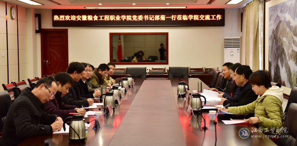 12月16日下午,安徽粮食工程职业学院党委书记邵菊一行来学院开展考察交流。学院党委书记万玉青、副院长赵淑华、院长助理艾苏龙陪同调研。