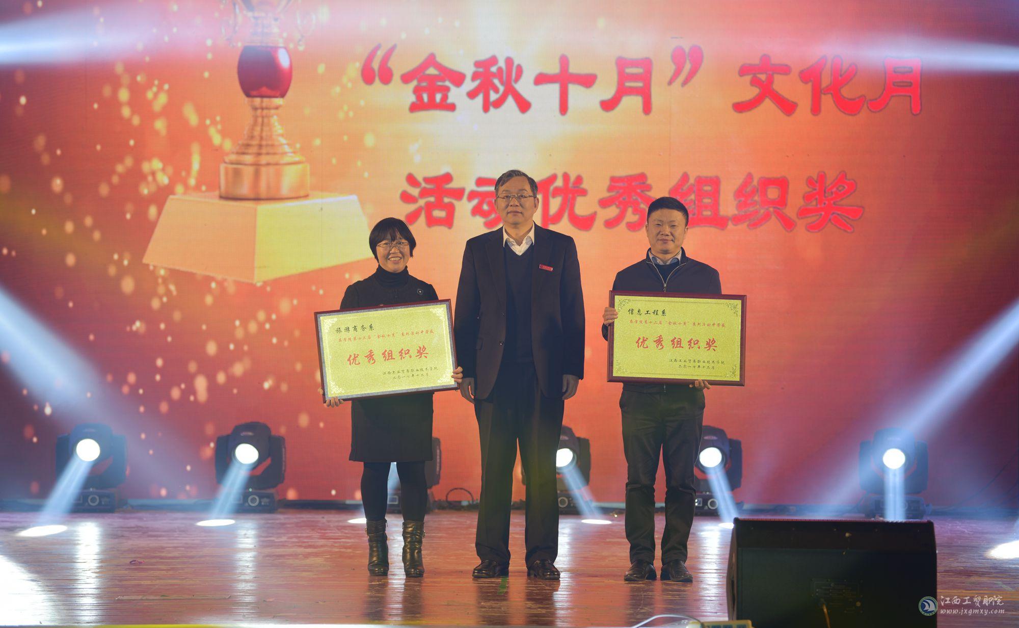 党委书记万玉青为获得“金秋十月”活动优秀组织奖系部颁奖