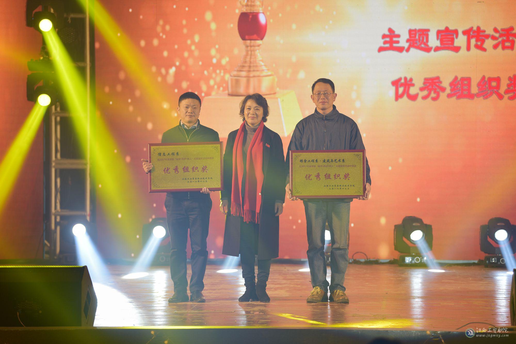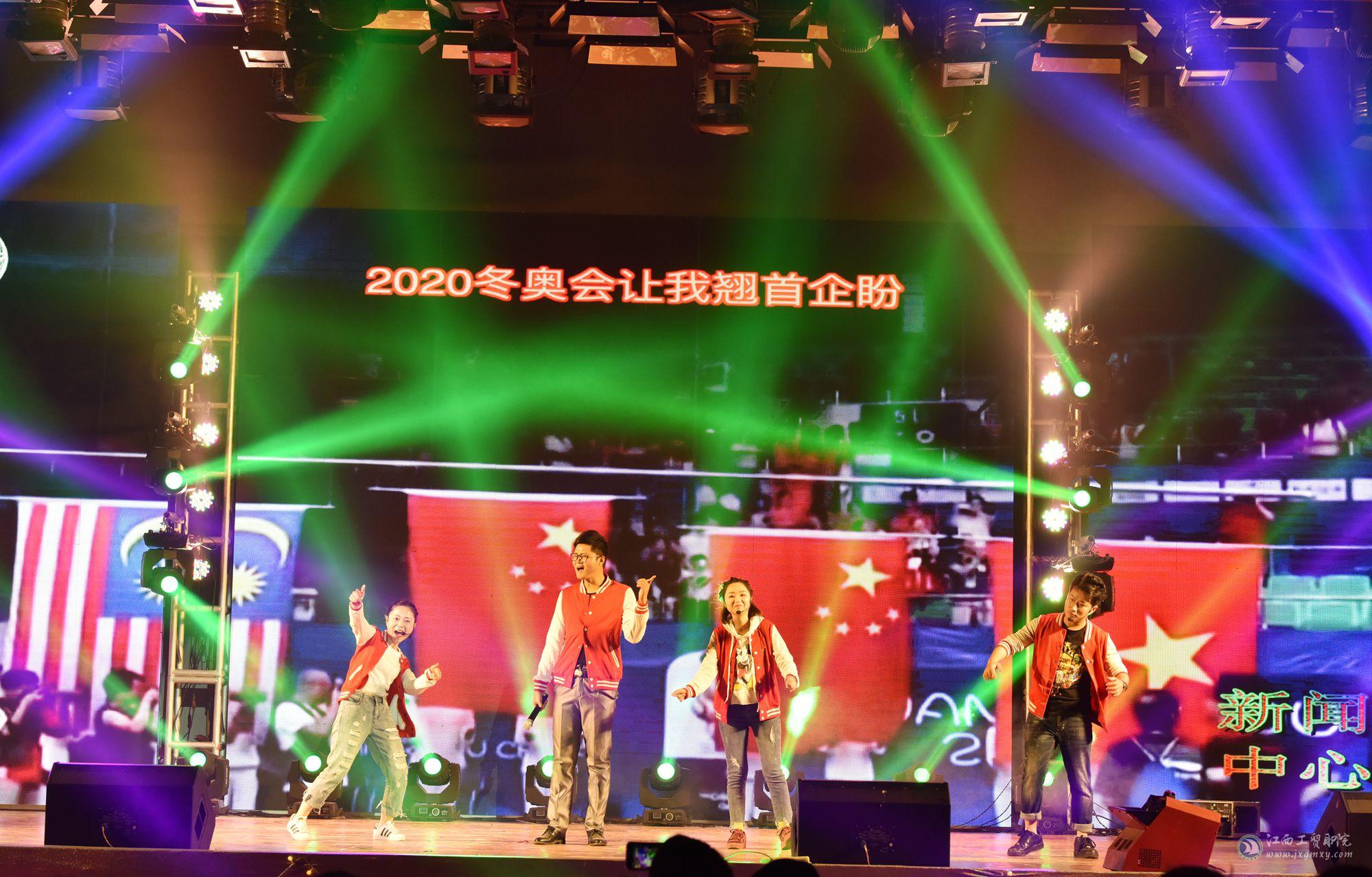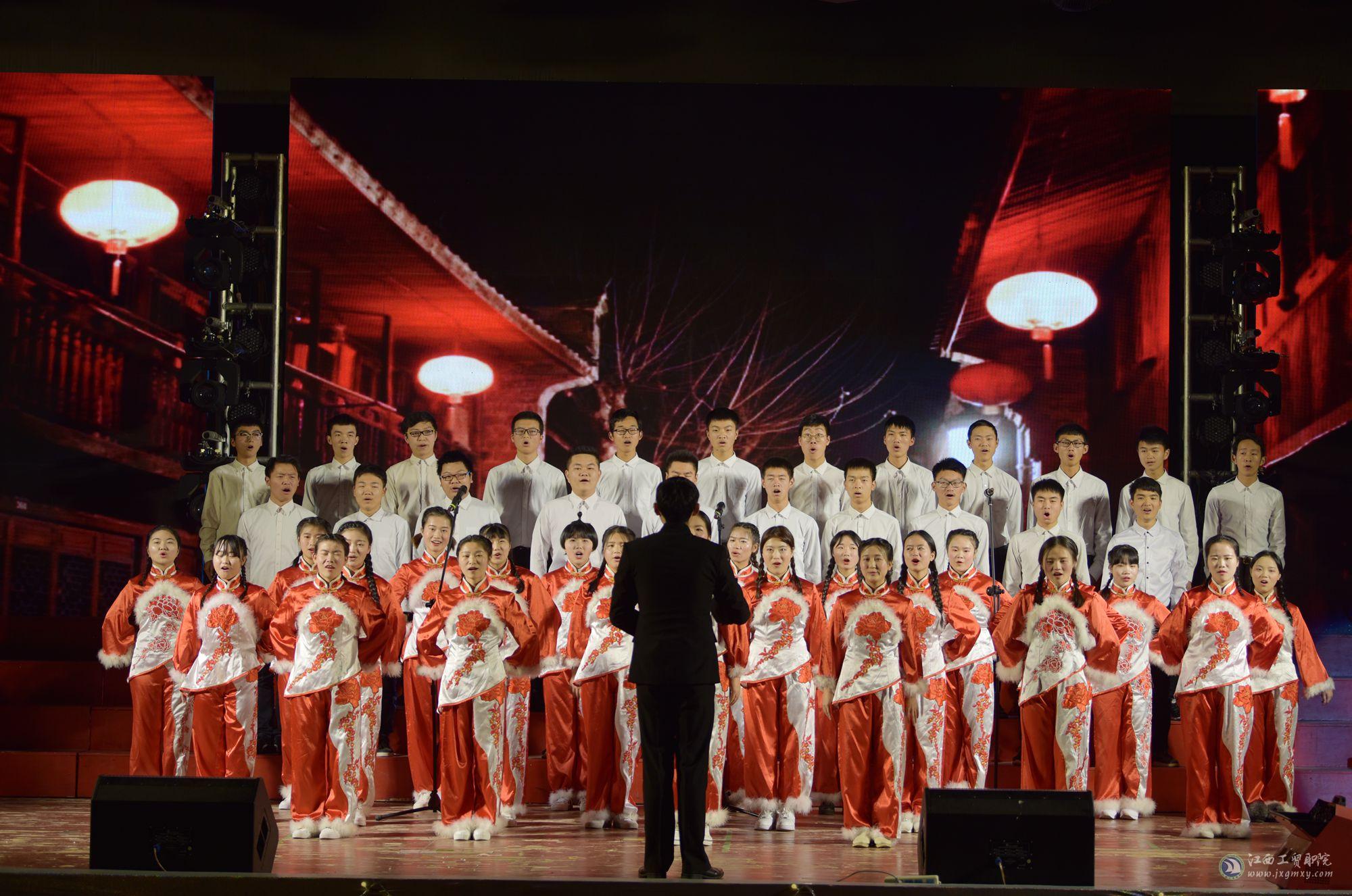 盛世又逢新岁月,春来更有好花枝。为深入贯彻党的十九大精神,喜迎新的一年到来,12月29日下午2点,江西工业贸易职业技术学院举办以“汇工贸梦想•展时代新篇”为主题的2018年元旦暨社团巡礼文艺汇演,学院领导万玉青、雷筱芬、郝育忠、赵淑华、周晓邑、万晓波、艾苏龙及全院教职工、学生2000余人欢聚一堂,喜迎元旦。