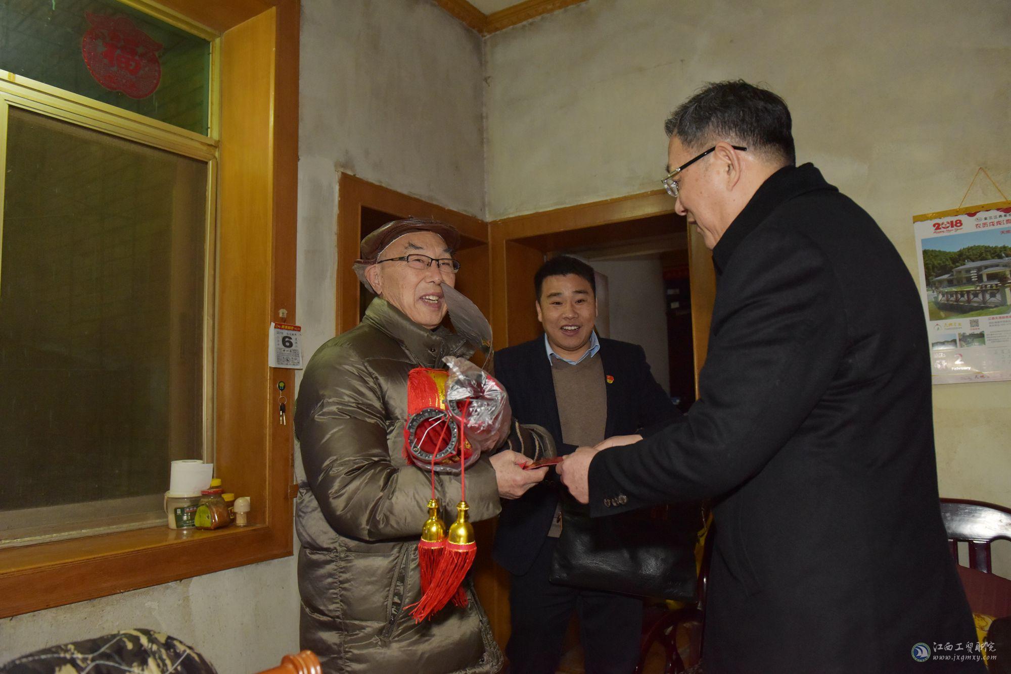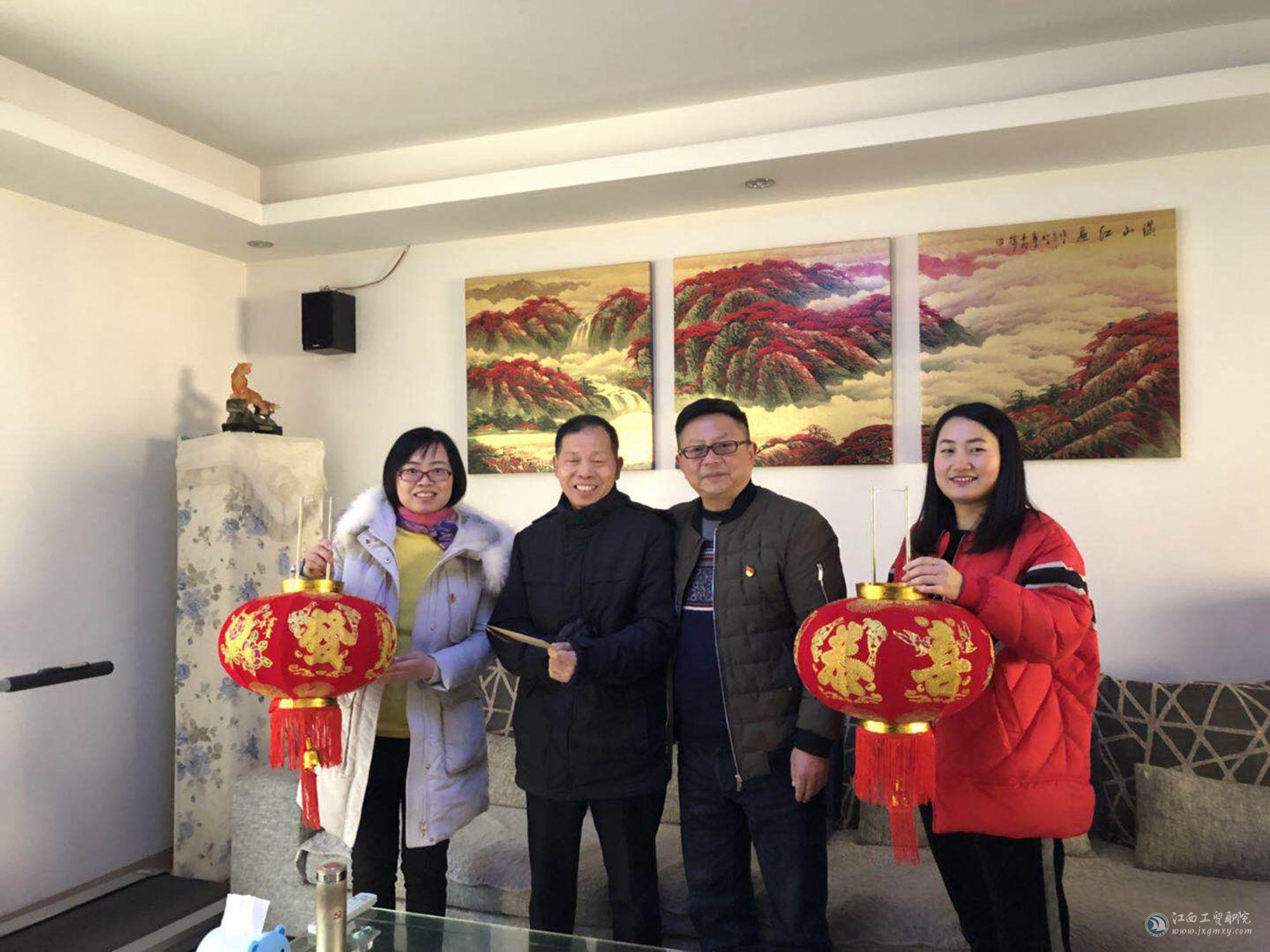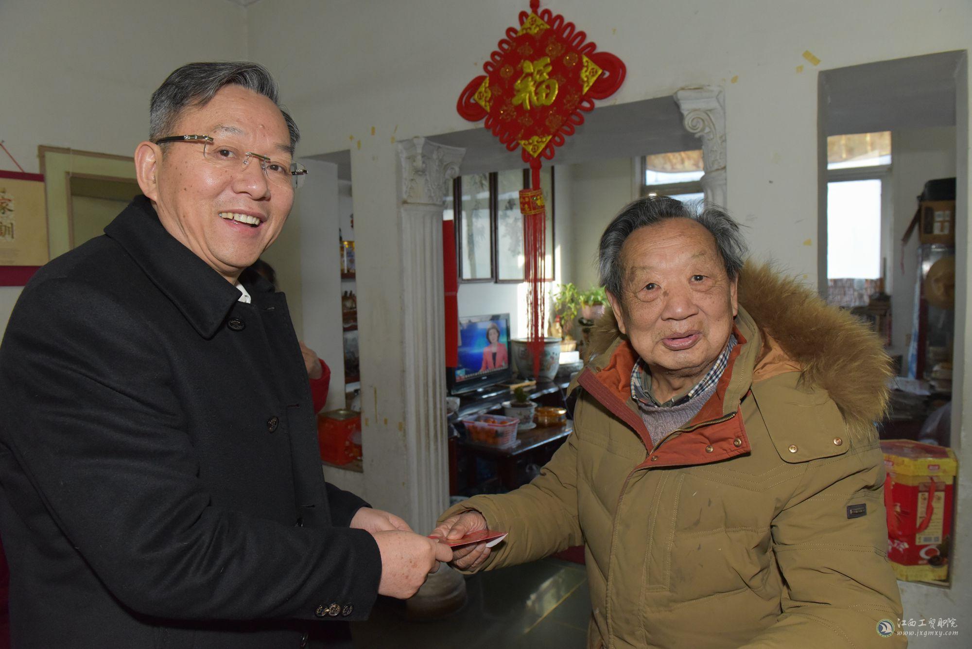 为认真贯彻落实党的十九大精神和习近平新时代中国特色社会主义思想,做好离退休职工、老党员、困难党员及职工家属的关怀工作。在中华民族传统佳节——春节来临前夕,1月29日至2月8日,江西工贸职院党委书记万玉青,院长雷筱芬,调研员郝育忠,工会主席赵淑华带领党委办公室、工会办公室、老同志党支部等负责人,走访看望慰问了学院部分离退休老领导、老党员、军属、教职工遗属、困难党员及教职工,代表学院党政和全体师生员工送上新春的问候与祝福。