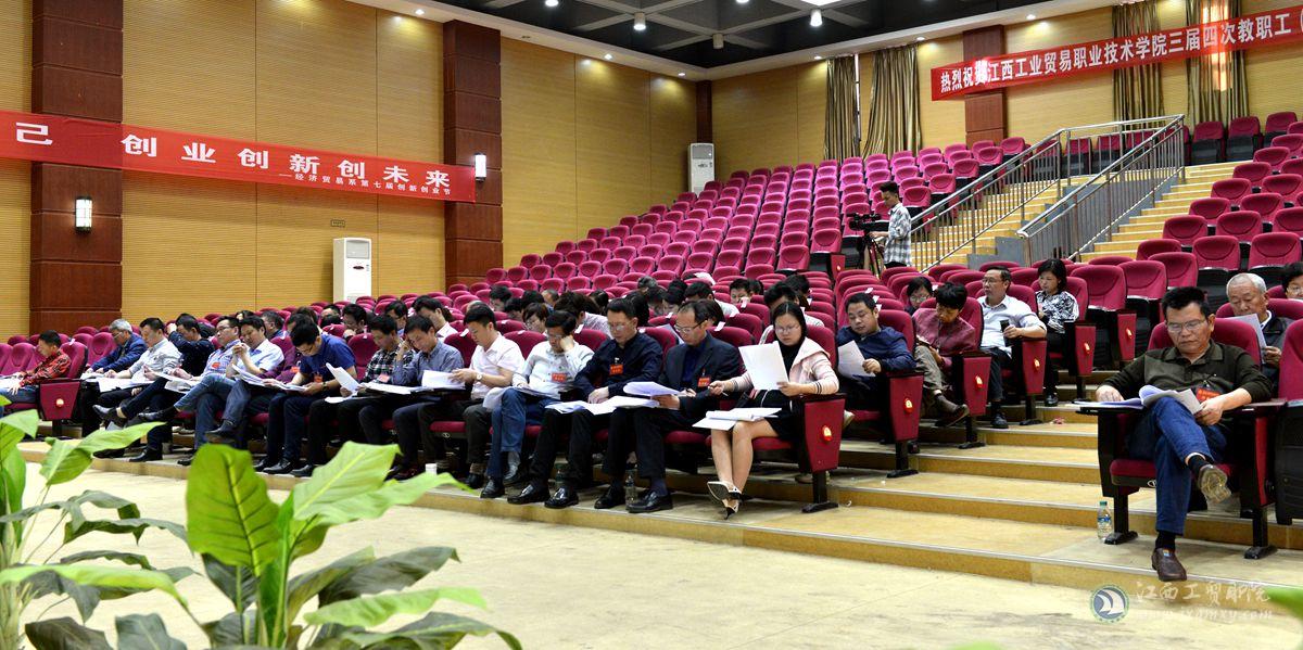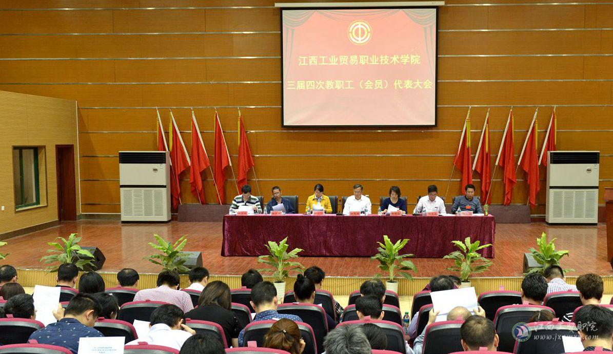 2018年4月20日,江西工业贸易职业技术学院三届四次教职工(会员)代表大会在图书馆三楼学术报告厅胜利召开。学院党委书记万玉青,党委副书记、院长雷筱芬,工会主席、副院长赵淑华,副院长周晓邑,院长助理艾苏龙以及第三届教职工代表大会的71名正式代表,7名列席代表参加会议。大会的主要任务是听取并审议学院工作报告、工会工作报告、财务工作报告以及讨论代表们提交的提案。副院长周晓邑主持会议。