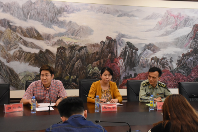 4月19日下午,学院2018年征兵工作业务培训会在求是楼415会议室举行,学院党委委员、副院长赵淑华出席并讲话,南昌市东湖区人民武装部政委邱建新应邀出席并讲话,2018届毕业班全体辅导员参加,培训会由武装部副部长罗卫兵主持。