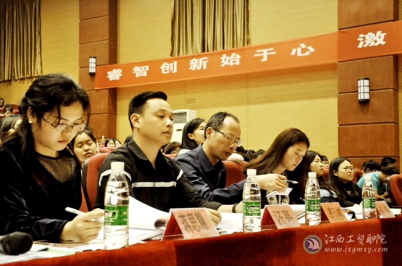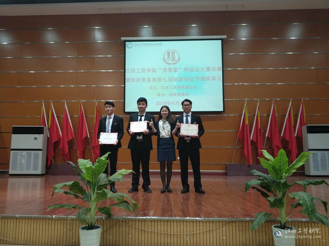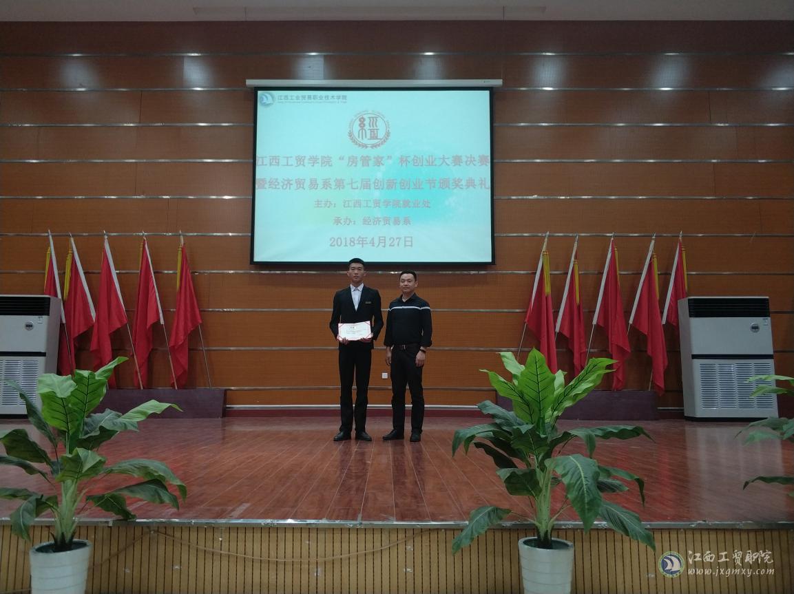 2018年4月27日19:00,学院“房管家”杯创新创业大赛决赛暨经济贸易系第七届创新创业节颁奖典礼在学术报告厅盛大举行。江西房管家网络科技有限公司人事部经理汪亮、经济贸易系主任李运楼、副主任陶晓峰、副主任何静、耶鲁科技有限公司创始人蒋思慧担任决赛评委并出席了颁奖典礼。各参赛的项目指导老师和学生代表约400人参加了决赛观摩及颁奖活动。