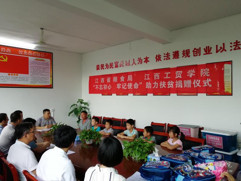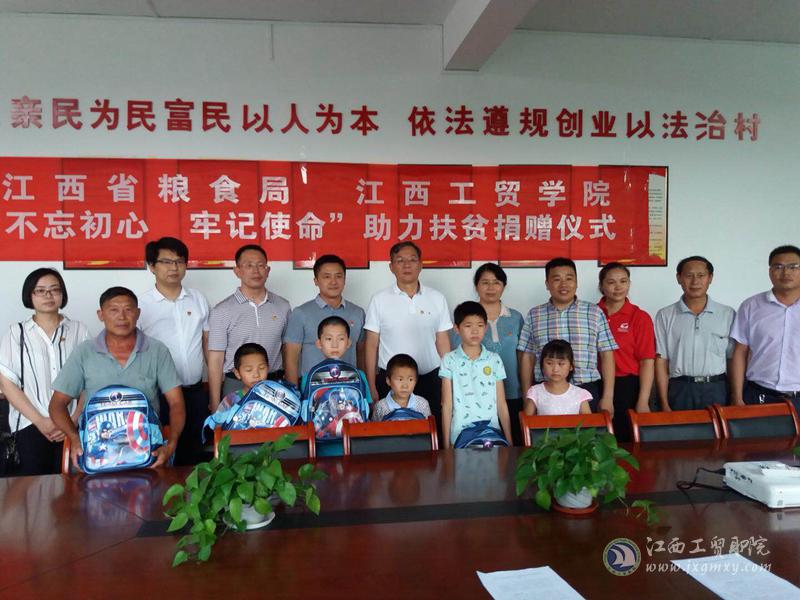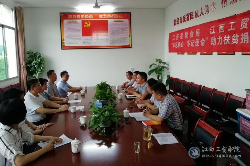 为深入学习习近平新时代中国特色社会主义思想和党的十九大精神,全面落实教育精准扶贫工作任务,积极做好省粮食局对口帮扶上犹县梅水乡竹山村脱贫攻坚帮扶工作。7月2日至3日,江西工贸职院党委书记万玉青率副院长、工会主席赵淑华,党委办公室、学工处、工会办、粮食工程系等部门负责人,前往赣州开展精准扶贫工作。
