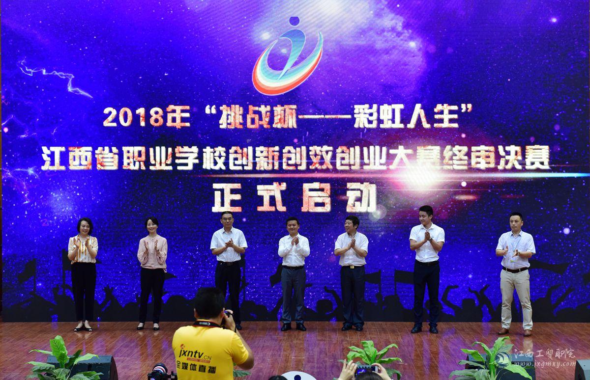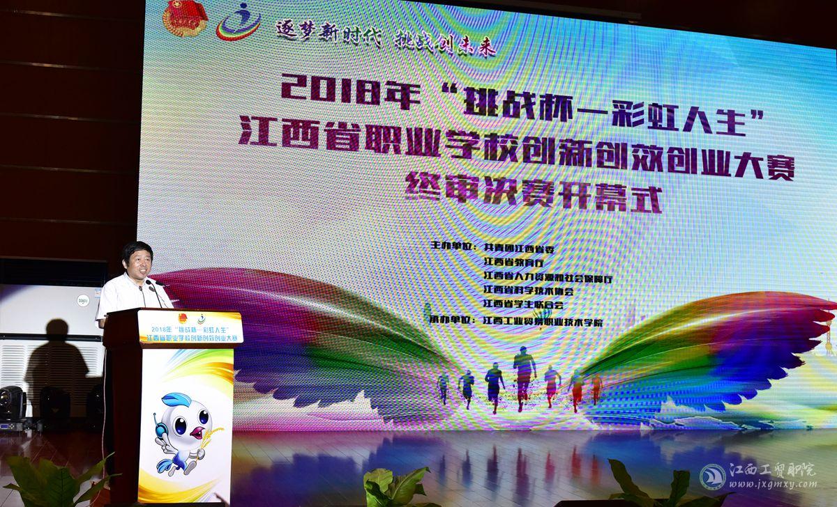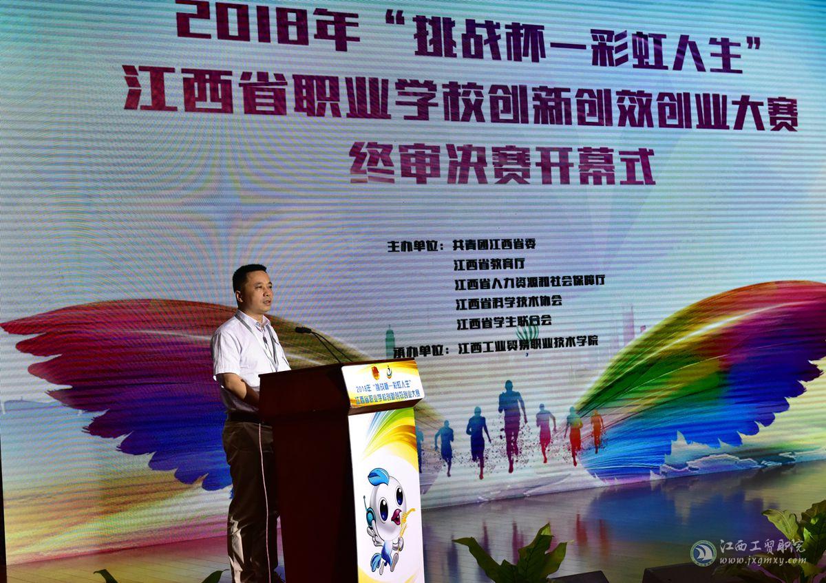 6月11日上午9点,2018年“挑战杯——彩虹人生”江西省职业学校创新创效创业大赛终审决赛在江西工业贸易职业技术学院拉开大幕,团省委副书记罗华出席开幕式并讲话,省科协副主席梁纯平,省学联主席吴齐凯,省教育厅职业教育与成人教育处调研员陈迎荔,省科协普及(青少)部部长黄丽芬,省粮食局党组成员、副局长罗洪,学院党委书记万玉青,院长雷筱芬,调研员郝育忠,副院长赵淑华、周晓邑,纪委书记万晓波,院长助理艾苏龙等出席开幕式,全省各参赛职业学校负责同志、指导老师、参赛选手共计500多人参加仪式,仪式由学院党委书记万玉青主持。