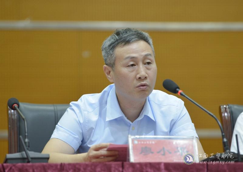 受省粮食局党组书记、局长黄河同志的委托,廖小平代表省局党组向辛勤耕耘在教学一线的全体教师,向为学院教育事业默默奉献的广大职工致以节日的问候,并对受到表彰的先进集体和个人表示祝贺。廖小平高度肯定了学院一年来取得的突出成效与精彩业绩,并对全体教职工提出三点要求:一要不忘初心,牢记使命;二要潜心问道,立德树人;三要以人为本,因材施教。他希望全体教职工以教育改革和发展为己任,志存高远、甘为人梯,脚踏实地、乐于奉献,为学院早日建成省级优质院校、全国粮食行业一流院校做出新的更大的贡献。