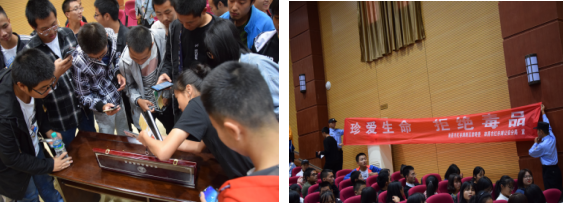 2018年10月16日,学院保卫处邀请南昌市公安局红谷滩公安分局缉毒大队教导员熊志强来校为同学们开展主题为“禁毒与梦想同飞”的禁毒教育专题讲座,由保卫处负责人邬啸峰主持,来自各系(部)的400余名同学认真聆听了讲座。