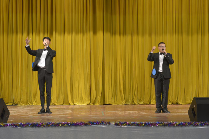 在老师帮帮唱环节,一首《美丽的神话》在粮食工程·建筑与艺术系黄跃坤同学和指导老师旷聿涵老师清亮柔美的演唱中显得格外动听;经济贸易系王景瑜、陈志能和指导老师张诗琪合唱的《天亮了》赢得了台下阵阵掌声;一首深情的《我只在乎你》在旅游商务系齐雨晴同学和邓丽斯老师的共同演绎下,将比赛推向了一个高潮。老师们的倾情助唱为比赛增色不少,同时展现了学院青年教师们独特的风采。
