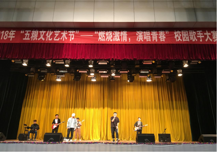 2018年10月23日晚7点“五粮文化艺术节”——“燃烧激情,演唱青春”校园歌手大赛在学院体育馆激情开唱。大赛邀请到学院党委委员、副院长赵淑华、学工处处长(武装部部长)李尊华、计划财务处芦凤珠老师、工会办公室裴志国老师、思政·公共课教学部付彦老师、院团委王菲老师以及招生工作处陈露老师担任评委。