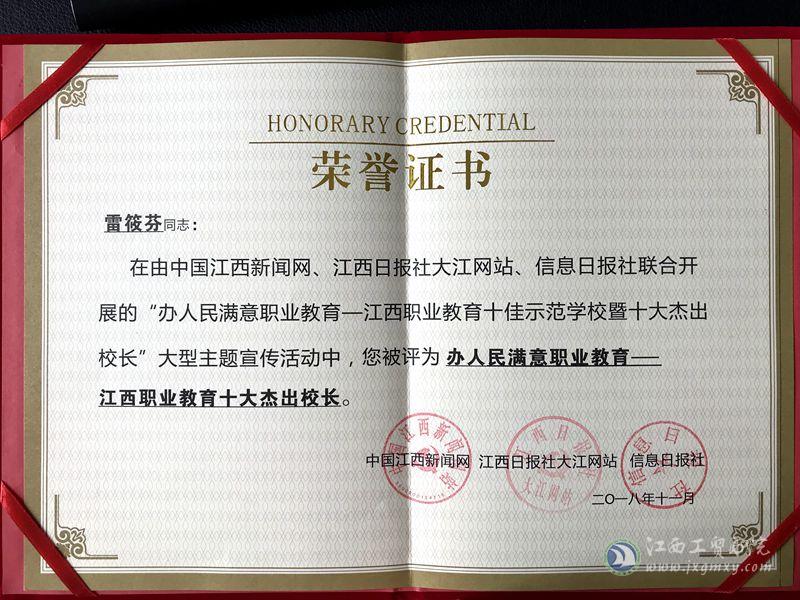 江西工贸职院荣获“办人民满意职业教育—江西职业教育十佳示范学校暨十佳杰出校长”奖