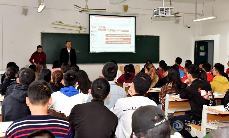 11月13日下午,志学楼205教室座无虚席,学院党委书记万玉青以“改革开放40年成就辉煌”为专题,为2018级社会体育班学生上了一堂生动的思政课。