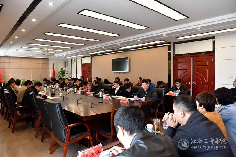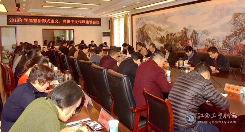 11月20日,江西工贸职院在求是楼第二会议室召开2018年学院整治形式主义、官僚主义作风建设会,学院党委书记万玉青,党委副书记、院长雷筱芬,党委委员、调研员郝育忠,党委委员、副院长、工会主席赵淑华,党委委员、纪委书记万晓波,党委委员、院长助理艾苏龙以及全体中层干部参加会议,会议由学院党委副书记、院长雷筱芬同志主持。