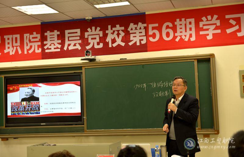 12月4日,学院党委书记万玉青走进基层党校第56期学习班,为全体学员授课。他以“改革开放40年:改变中国,影响世界”为主题,与大家分享中国改革开放四十周年来取得的翻天覆地变化及四十年来中国发展对世界经济腾飞带来的深刻影响。