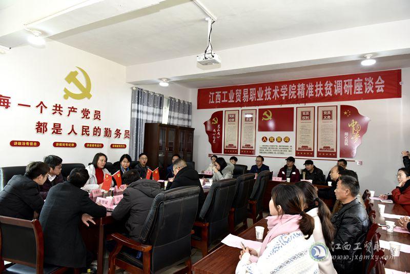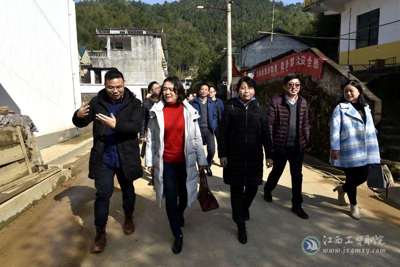 为积极做好学院对口帮扶工作,充分发挥学院专业办学优势,根据《学院2018—2020年定点帮扶工作方案》,12月17日至18日,江西工贸职院院长雷筱芬、副院长赵淑华、副院长周晓邑、院长助理但志亮及专家团成员一行14人赴弋阳县叠山镇慈竹村,开展精准扶贫调研活动,弋阳县常务副县长叶文华、叠山镇党委书记李长青、镇长李云山分别陪同调研。
