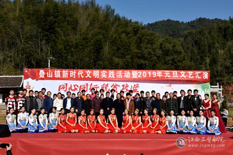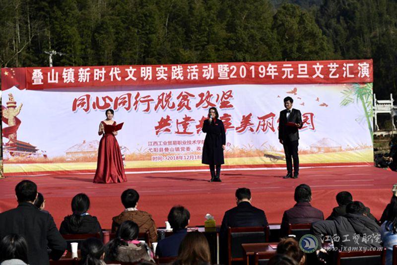12月18日,学院与叠山镇党委、政府联合举办了叠山镇新时代文明实践活动暨2019年元旦文艺汇演。由学院团委、宣传部干事与学生演员共同组成的慰问演出团,与叠山中学、当地村委会一道,为当地百姓带来了一场丰盛的文艺盛宴。演出形式丰富多样、内容精彩纷呈,包含了舞蹈、朗诵、独唱、快板、赣剧等等。喜乐祥和的氛围感染了前来观看演出的村民,整个慈竹村都沉浸在一片片欢声笑语中。
