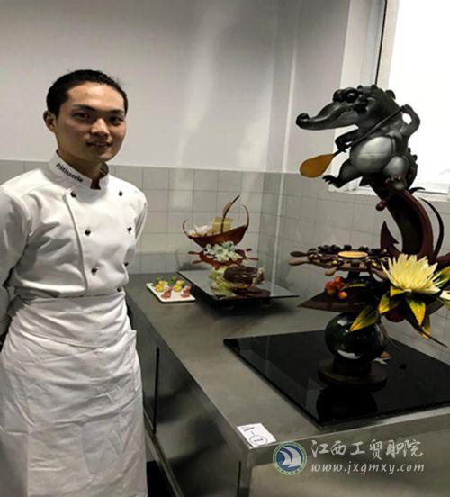 糖艺西点制作项目比赛包含了工艺造型和西点制作两个部分,此次糖艺西点制作项目比赛共分四个模块:整形蛋糕(含拉糖支架)、杏仁膏塑形、巧克力糖果、巧克力造型。经过4天紧张激烈的角逐,我校刘兆凯同学以精湛的技艺和过硬的本领,赢得了专家评委的青睐,顺利从11位国家队选手中突围,以第4名的成绩成功跻身全国五强。