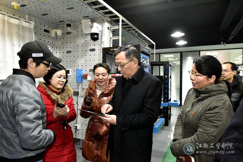 院领导一行首先参观了新建成的物联网现代学徒制实训基地。现代学徒制负责人梁丽老师对场所进行讲解和演示。在听取场所建设情况后,万玉青指出,物联网现代学徒制实训基地是集智能家居、智能楼宇、智慧交通等实训功能于一体的现代化实训场所,该基地的建成对培养物联网领域技术技能型人才有巨大的推动作用,场所设备在学院乃至省内同专业保持了领先的地位。他希望信息工程系以此为契机,用好实训场所在人才培养中的作用,切实提高人才培养的质量。
