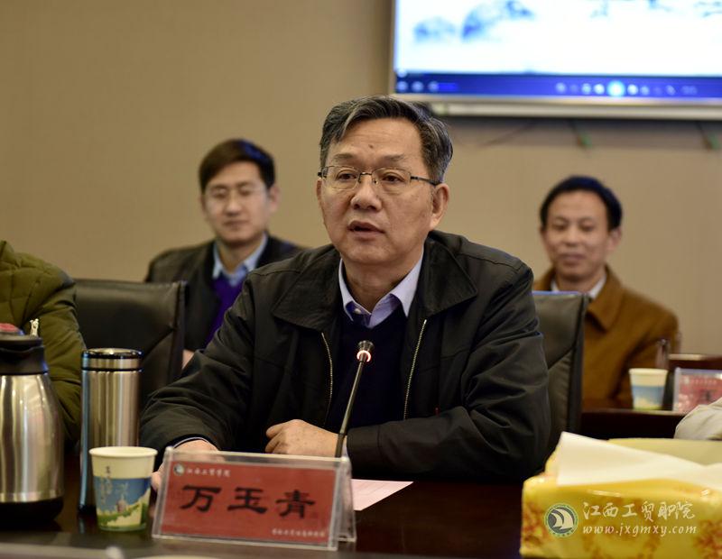 万玉青对李长青一行来院表示欢迎,并向客人简要介绍了学院办学历史。万玉青表示,学院将按照党中央、国务院和省委、省政府关于定点驻村帮扶工作的重要决策部署,全力支持弋阳县叠山镇慈竹村打好脱贫攻坚战,助力全村脱贫摘帽。李长青从红色、古色、绿色三个方面介绍了弋阳县情况,对学院的大力支持表示感谢。