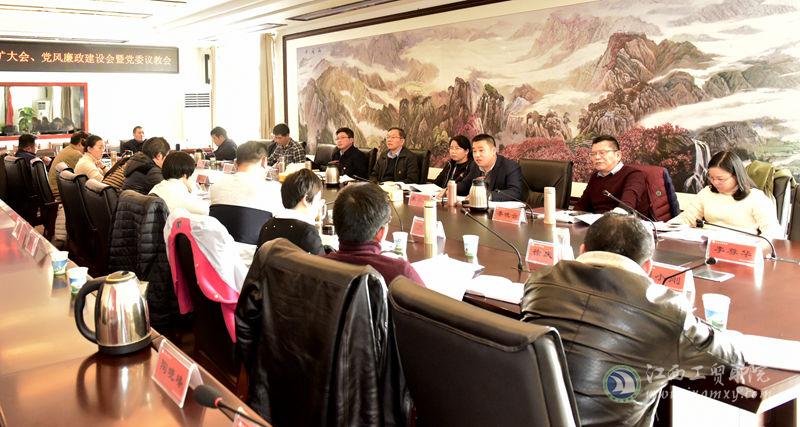 人勤春来早,万事日相催。3月6日,江西工业贸易职业技术学院召开2019年党委扩大会、党风廉政建设会暨党委议教会,总结回顾2018年学院党委和纪委工作,分析研判当前形势,谋划和部署2019年学院主要工作,进一步推进学院全面从严治党与教育教学工作。学院党委全体班子成员、全体中层干部参加会议。党委委员、调研员郝育忠主持大会。
