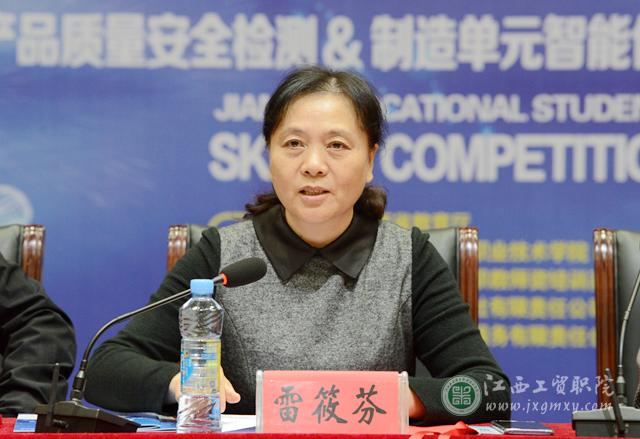 雷筱芬致开幕辞,她代表学院向省教育厅及赛事协办单位对大赛的支持与关心表示衷心感谢,同时欢迎亲临比赛现场的各位裁判、老师和参赛选手。她表示学院一直致力于学生技能技术的培养,自2003年起学院共举办15届技能竞赛节,通过以赛促技极大程度激发了全院学生学技术、钻技能、比技艺的热情,学院师生在各类国家级及省级技能大赛中取得了优异成绩。为了确保此次大赛取得圆满成功,学院专门成立了赛事领导小组,按照“科学组织、周到服务”的工作方针,精心组织,周密安排。希望参加竞赛的全体师生能严格遵守比赛规则,履行义务、承担责任,文明比赛,赛出水平、赛出风格。