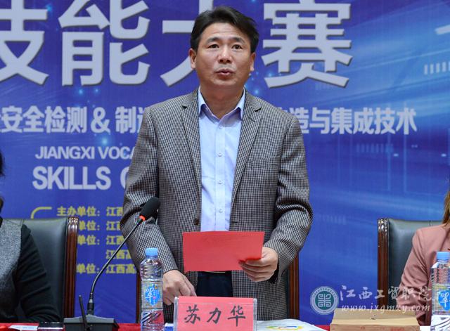 10月30号下午,由江西省教育厅主办的2019年江西省职业院校技能大赛农产品质量安全检测及制造单元智能化改造与集成技术在江西工业贸易职业技术学院正式拉开帷幕。学院党委副书记、院长雷筱芬在开幕式上致辞,江西农业大学职教师资培训基地副主任苏力华出席开幕式并宣布大赛开幕。开幕式由教务处处长曾聪主持。