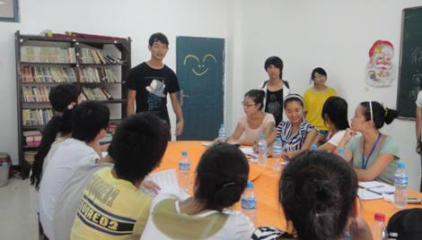 首先大家依次在黑板上写自己的名字,然后做简短的自我介绍,这时各个部长就开始提问,例如“你为什么参加这个部门啊?对这个部门有什么看法吗?”等问题。整个招新现场气氛活跃,大一新生们对此表现出浓厚兴趣。