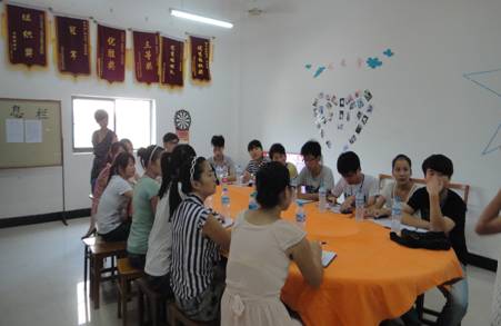 团总支学生会各学生组织的负责人依次介绍自己本部门的基本情况及招新要求。面试时,大家都表现得十分敬业,每个学生会成员面前都有一瓶水和一本笔记本,每次一共进来5位同学。