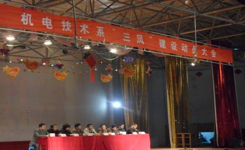 通过动员大会,在机电技术系将掀起“三风建设”的高潮,使全系的学风、班风、室风建设向更好、更高的目标迈进,力争打造工贸第一品牌。