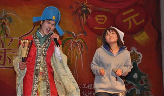 学院雷晓芬副院长用一首《女人花》来表达对工艺系全体师生的新年祝福。而由各班班长及团支书共五十人一起表演的《成吉思汗手语舞》可以说彻底点燃了全场的气氛。看着平日为人