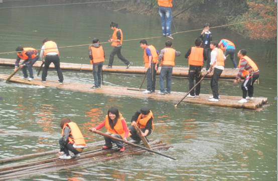 本次训练内容包括跋涉崎岖山路――穿越竹林――攀岩――水上钢丝――湖中戏竹筏――高山滑草。大家边训练、边领悟、边总结,面对困难和挫折,大家互相支持和鼓励,特别是在湖中戏竹筏,许多队员主动承担划桨的“船夫”,为了大家的快乐甘愿奉献自己的力量。每一项活训练后,大家都会进行反思,认真思考,与队员一起分享心得体会。许多成员表示,通过训练,感受着“团结、信任、支持、协作”。