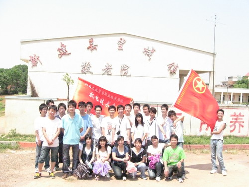 (机电技术系)5月10日,机电技术系入党积极分子来到新建县望城镇敬老院看望老人。早上八点,同学们从学校出发,提着为老人们带来了的一点点小生活用品,同学们头顶烈日,步行了一个半小时来到了望城镇敬老院。