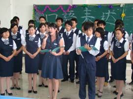 08自考旅游管理班的同学们带来的诗歌朗诵《相信未来》,激情洋溢的音乐,唯美的舞蹈,让现场的观众们留下了深刻的印象;08自考文秘(品管)班带来的诗歌朗诵《祈福中华》,在“5・