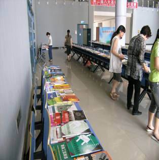 (图书馆 吴震报道)5月10号上午九点至下午两点,《图书馆2011年春季教材展》在学院图文信息中心一楼大厅如期举行。展示的教材主要来自中国劳动社会保障出版社出版的百余种教材,涉及到大专、中专两个层次。这些教材涵盖了公共课、机电类、电子类、经管类、计算机类、文秘、餐饮、财经等多个专业。参展的教材也都是近两年公开出版发行的高职高专规划教材及中专层次教材。