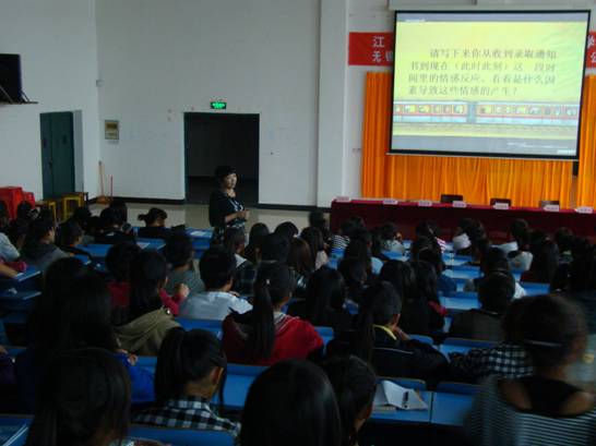 潘燕主任在讲座的伊始,首先与同学们进行了良好的互动,从新生收到录取通知书到入校读书后这一段时间的情感变化开始谈起,激发了同学们极大的兴趣,也让同学们能够在现场抒发一下自己的情感历程。接下来谈到的环节是“从中学到大学的转折”,转折意味着变化,要适应转折必须先了解变化的过程,大学一年级的经验对大学三年有着重要影响,大学三年的经验对未来有着重要的影响;进入大学后,同学们的很多方面都在发生着改变,生活环境改变了,学习方式改变了,人际关系改变了,很多同学甚至会因为环境的改变而患上“新生适应综合症”,所以潘主任在讲座中指出,同学们不仅要爱上大学生活,还要学会如何去适应大学生活,还要在适应中,去寻找大学的发展任务,比如学业发展、个性与社会性发展、生涯发展等。