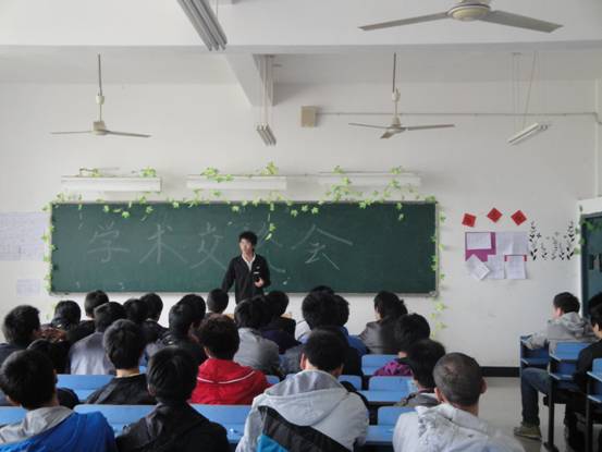 此次座谈会的主题是“有时间就能创造奇迹”。 会议由11级双证班班长庞强同学主持。会议共分为两个阶段,第一阶段由09级优秀学长学姐依次上台细致为大家讲述了大一学习生活的注意事项和方法技巧,他们的发言风格各异,饶有趣味,不时引得台下阵阵掌声。第二阶段为互动环节,同学们围绕最关心的机械制图课程和大学英语的学习方法以及一些与生活相关的问题进行了深入的交流。学长学姐们发表了自己的观点并提出了解决问题方法。比如09级技师自考本科班班长曾登同学,他以自身学习体会告诉我们如何学好专业课,也小小的传授了他刻苦学习的体会。