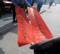 火红的对联,既是对即将过去一年的最美总结,也是对2015年更好的向往和期盼。短短的半天,学生会成员便把准备好的150多幅春联和50余个红福字送到了师生们的手中。