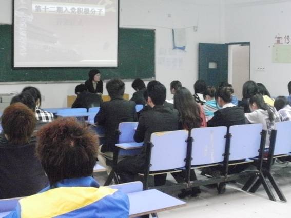 接着,支部黎书记对本期入党积极分子提出以下几点要求,一要认真完成党课培训;二要积极参加学院、系各项专项活动,如:系第二届IT技术节、学生宿舍人防巡查、晨练活动及其他专项活动;三要积极为系、为班级、为寝室服务,时刻以党员的标准要求自己。提高党性修养、遵守党的纪律、牢记先进性要求,这是黎文珍书记对积极分子们的期许。