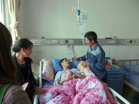 目前,谯飞飞同学已经苏醒,但是当看到现在的他,每天都要被父母喂饭,穿衣,而且每天都要接受治疗。我们的心情也久久不能平静。这次突如其来的灾难对谯飞飞的家庭和学校来说都是一个噩耗,尤其对这个尚不富裕的家庭更是雪上加霜。谯飞飞父母都在医院照顾谯飞飞,基本失去了生活来源。
