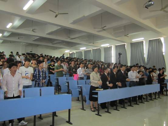 讲座正式开始前,监理万夏燕与全体同学进行了现场互动。鸿基房产工作人员跳的开场舞使得现场气氛非常活跃。接着,万监理从回顾改革开放以前和现在的国民经济增长、教育事业、体育事业进行比较;介绍鸿基地产近几年获得荣誉;展望鸿基房产未来的发展三个方面将鸿基地产的企业文化与同学们进行了分享。