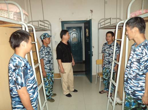 随后,褚书记还带领大家走访了新生宿舍,在走访过程中,褚书记详细询问了新生的入住情况和生活适应状况,并对同学们提出的问题认真解答。褚书记还重点强调了宿舍及人身安全问题,军训期间要多注意身体,要求广大同学要保持和辅导员及学生干部的联系,对于生活和学习中出现的问题和困难,要及时反映,及时解决。褚书记还鼓励同学们要学会调整自己的心情和学习方式,积极投入到大学的生活中来。
