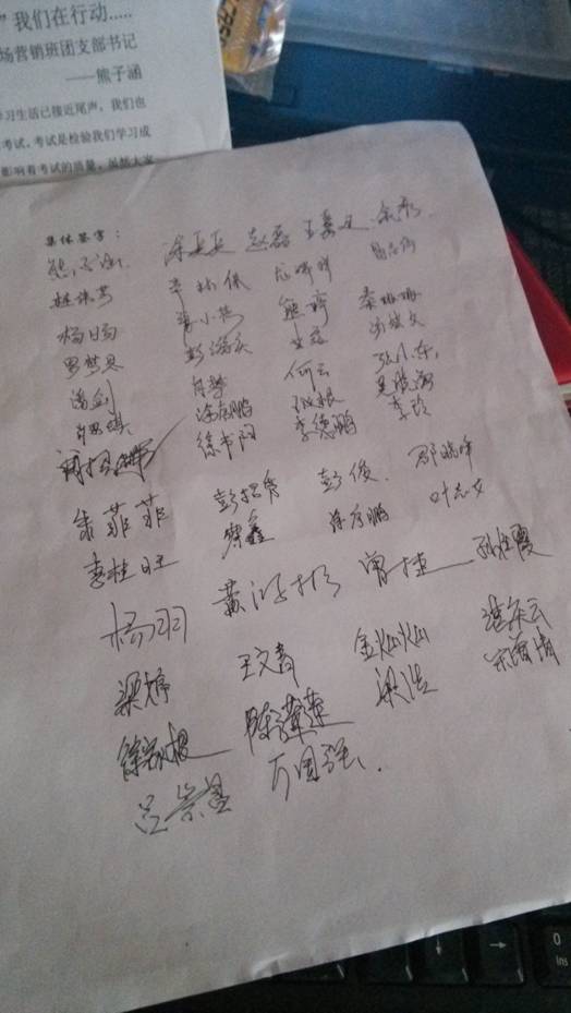活动现场同学们争先恐后地来到讲台前庄严签名,同学们都希望自己的名字有风格、醒目,希望能给活动造势、给力。本次活动在同学们的欢声笑语中结束。
