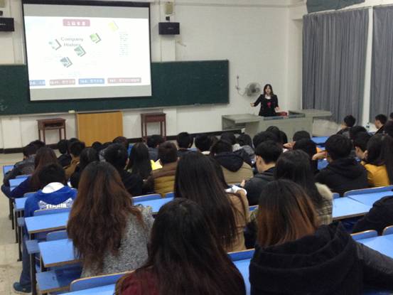在近一个小时的讲座时间里,毛芳芳和同学们讲授了中超电器市场细分,中超电器的竞争优势以及团队先进的“FABE销售法则”,一个个鲜活的案例让在场的同学们听得津津有味。