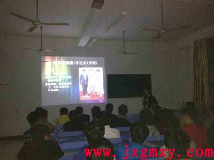 讲座主要围绕“行为礼仪”和“服装礼仪”等方面来阐述礼仪的相关知识和注意事项。通过PPT和观看影片的方式分别从仪容、仪表、仪态各方面进行阐述,同时也有提问环节,与同学们进行互动。讲座通过理论知识讲解和现场示范、互动等方式,引起了同学们的共鸣,大家怀着浓厚的兴趣积极参与互动,现场气氛异常活跃。