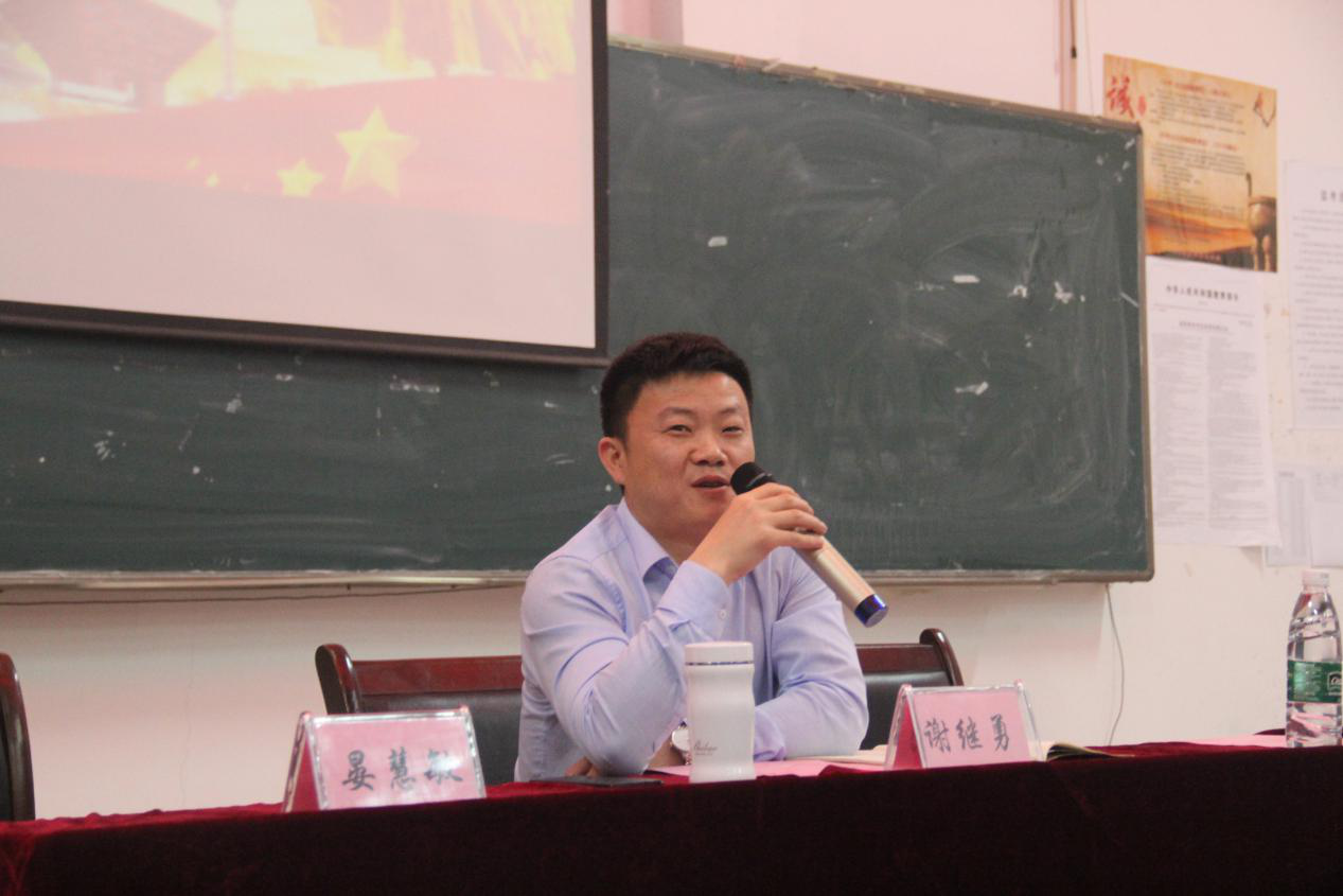 会议伊始,学院党委委员·系党支部书记谢继勇同志为同学们带来“学好传统文化,做新时代有为青年”的主题讲座。讲述了中国传统文化中遒劲有力的汉字透露出来的人文气息、情怀、温度,以其独特的形式给予我们深邃恒久的精神财富,以偏僻入里的方式从大家熟知的寓言故事“愚公移山”、“精卫填海”教育我们领悟“幸福就是靠奋斗出来的”的深层含义,激励大家做一个有理想、有责任、有担当的新时代有为青年。