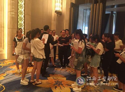 (旅游商务系 罗志珍报道)酒店参观见习是酒店管理专业重要的实践课程,该课程是让学生在学习酒店管理专业知识之前,通过入学初期直观的酒店工作环境了解,让学生对所学专业以及酒店各部门和岗位知识有所认知。9月14日下午,餐旅教研室经过与南昌万达文华酒店(五星级)沟通,分两批赴酒店进行参观见习。