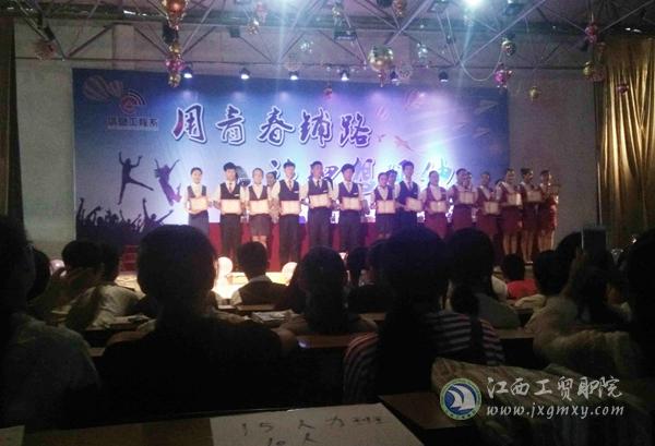 会上,副主任彭晔宣读《旅游商务系关于聘任学生助理辅导员的决定》、商务教研室主任周万中宣读《旅游商务系关于表彰优秀志愿者的决定》、轨道教研室主任韩莹宣读《旅游商务系关于表彰最能吃苦、最能奉献的军训教官的决定》。出席大会的领导和嘉宾为获奖者颁发荣誉证书;