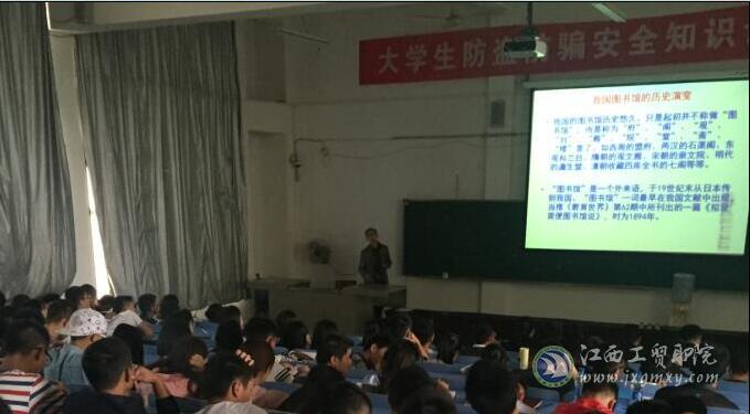 为进一步拓展学生对学院图书馆纸质图书资源的认识水平,提高他们对资源的利用水平。图书馆于2015年10月25日中午12:50至13:30在一教113教室,举行了本学期的第一次学生读者培训会。